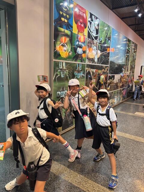 昆虫館の中に入ると、右にも左にも昆虫の写真がありました。「ハチだ!」「チョウだ!」と大興奮!