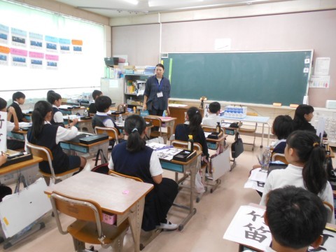 2組は「竹笛」を習字で書いていました。今日は字が小さくならないように,バランスを考えながら大きく書くことを意識しました。次の時間では,細かなところにも気をつけながら書いていきます。