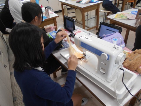 2組は家庭科で見守り隊の方々にお渡しする感謝の品をミシン,手縫いなどでコースターやお守りなどを作製しています。お渡しできる日を楽しみにしています♪
