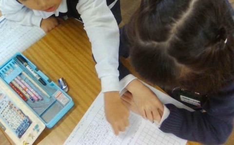 間違えやすい助詞の「は」「へ」「を」の使い方や、句読点の打ち方や「」の書き方などをじっくりと復習することができていました。