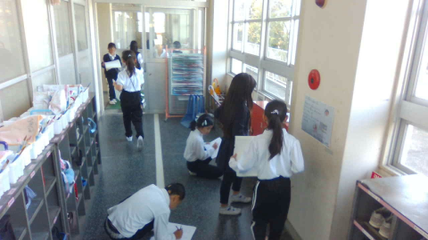 消防署で学んでことを活かし,今日は学校にある消防設備について学びました。