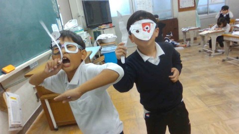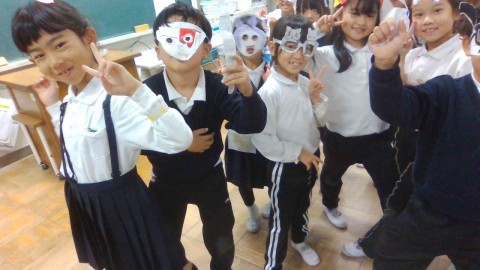 10/31はハロウィンの日なので、自分でオリジナルの眼鏡やお面などを作成し、ハロウィンパーティーをしています。とっても楽しかったですね。