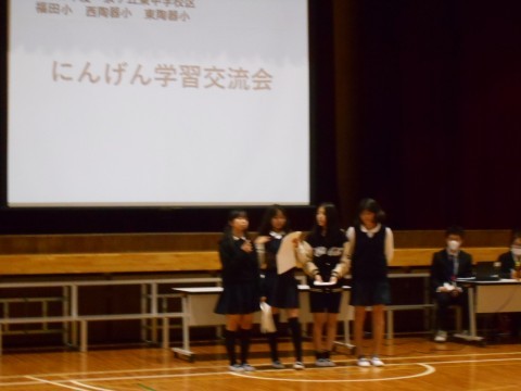 お昼から西陶器小学校・東陶器小学校・福田小学校の6年生が集まり,東陶器小学校に行き,人権について語り合うにんげん学習交流会が開催されました。
