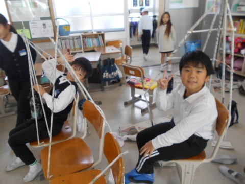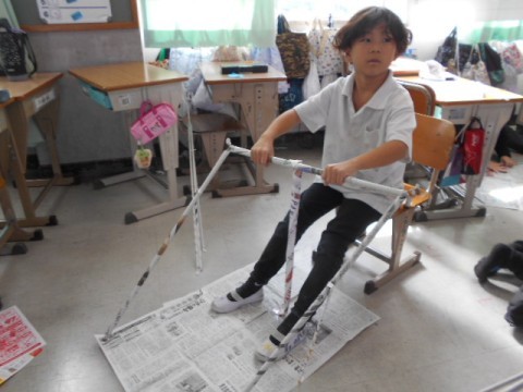 1組では,図工の学習です。前の時間に作った小さなものから今日は大きな作品作りに挑戦です!前回は簡単に立たせることができたようですが・・・今回はグラグラします。どのようにすればよいのか工夫して試行錯誤している姿が素敵でした♪