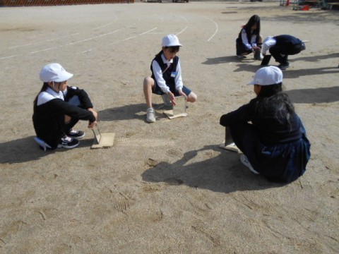 2組では,理科「光のせいしつ」の学習をしています。鏡で太陽のひかりをうけたらどうなるのか・・・光をはね返して壁にあててみたり,友だちの鏡にはね返してみたりといろいろ試しています。何か発見できたかな?