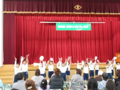 体育大会の時に披露した「ダイナミック散歌」を力いっぱい踊ってくれていました。3年生の参加してくれた人,とっても素敵でしたよ♪