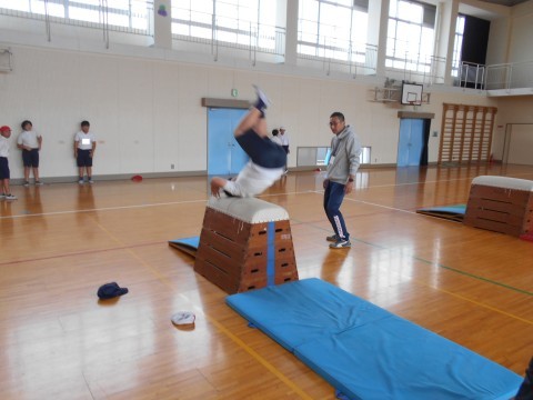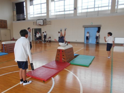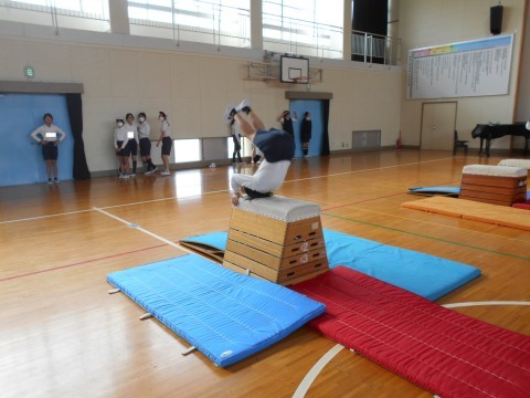 1組では跳び箱の学習をしていました。手のつく位置や手の押し方を工夫して,「首はね跳び」をめざしています。けがしないように頑張りましょう!