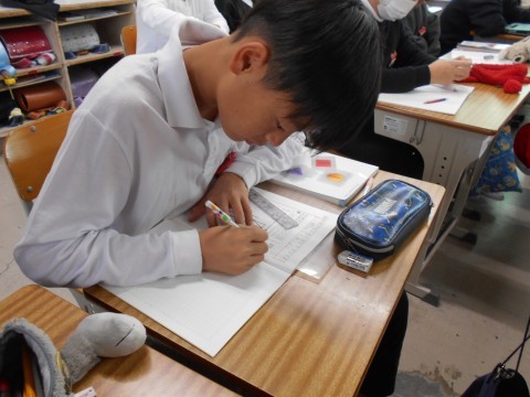 2組では「比例」の学習をしていました。比例の関係をグラフに表し,比例のグラフの特徴について考えました。比例のグラフにはいくつか決まりがありますね。