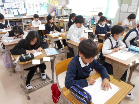 1組では「図形」の学習をしていました。いろいろな四角形の対角線について調べました。それぞれの四角形の特徴を覚えられたかな?