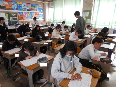 2組では「単位量あたりの大きさ」の復習をしていました。プリントを何枚も解き,学習したことをおさらいしていました。