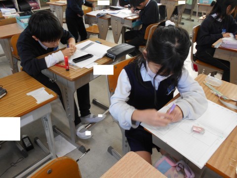1組では,コンパスを使って円を描いていました。針をさす場所を工夫して難しい図形にもチャレンジしていました。