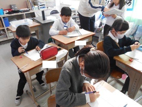 2組では,小数の学習をしていました。1cmより短い長さは何cmになるのか考えました。ものさしのめもりをよく見て解いていました。