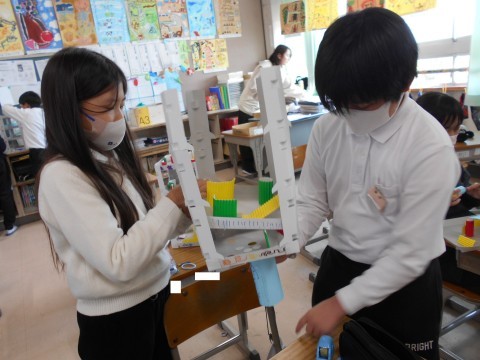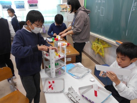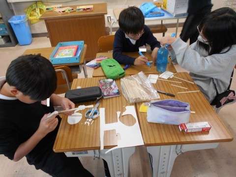 1組では,図工「ころころがーれ」の学習をしていました。穴の位置やかべの位置を工夫して制作していました。