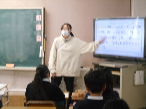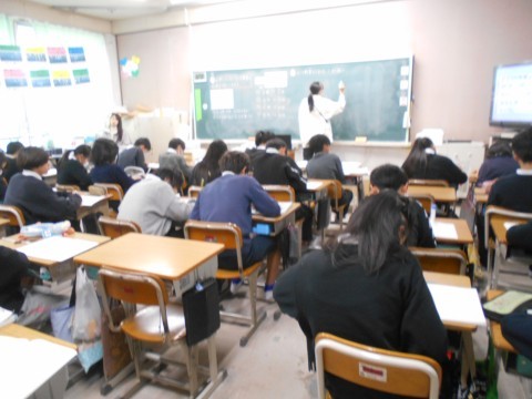 1組は外国語の授業で,NSの先生に「旅をするならこの国へ」とおすすめの国の紹介をスライドにまとめて,英語で紹介していました。聞いているこちらも,行きたいな~と思いましたし,英語ですすめている語学力もすごいなぁと思いました。