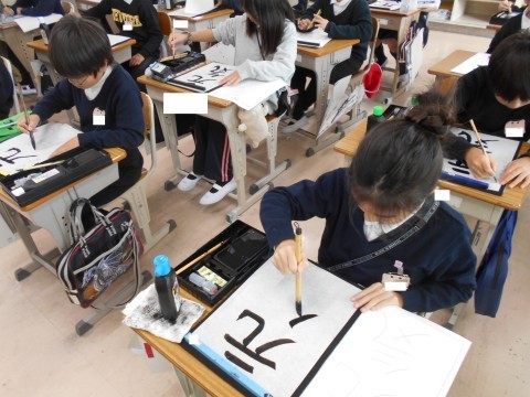 2組では,書写で「元気」という字を書いていました。字の形やバランスを確認するために鉛筆で書き,その上から筆で書いていました。字の大きさや形はわかったかな?