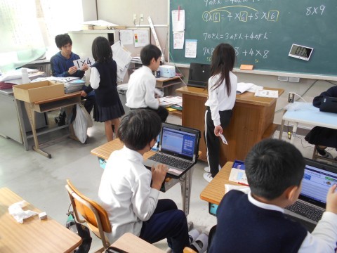 2組では,算数の学習で九九の学習をしています。今日も先生に問題を出してもらって,チェックをしてもらっています。できた人からタブレットを使ってドリルパークで習熟をはかっています。九九は反復学習が大切です。粘り強く頑張っていきましょう!!