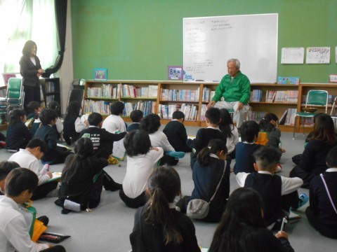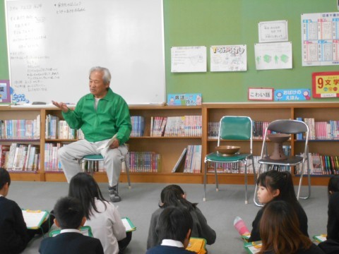 3年生は総合的な学習の時間の学習で,西陶器校区連合自治会長の方に来ていただいて,西陶器の歴史について出前授業をしていただきました。