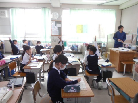 2年生は算数の学習をしています。九九の学習が進んでいるようです。今日は九九の表を見ながら,気づくことを発表していました。よく見てみると・・・同じ答えの九九があるようです。みんな同じ答えになる九九をたくさん発見していました!!