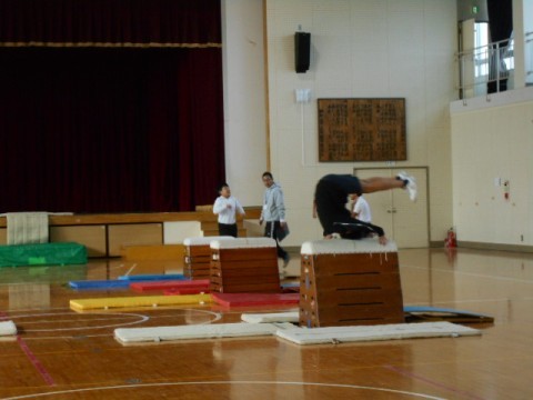 2組では体育で「台上前転」の学習をしています。台上前転ができる人は,首はねとびに挑戦です!