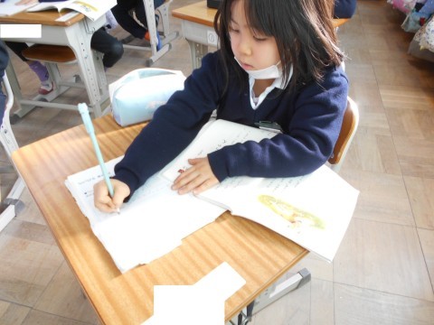 1組では,国語「どうぶつの赤ちゃん」の学習で,お話を読んだ感想を書きました。初めて知ったことや不思議に思ったことを自分の言葉で書いていました。