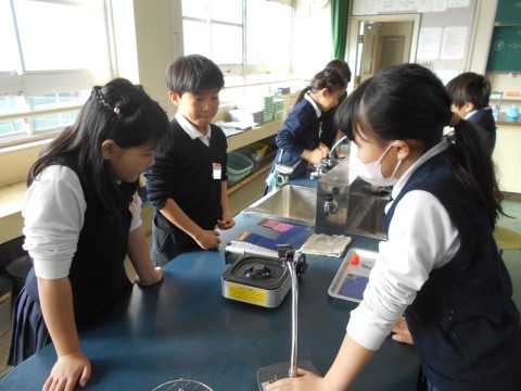 2組では,理科「もののあたたまり方」の学習をしていました。金属はどのようにあたたまっていくのか,実験をして確かめました。