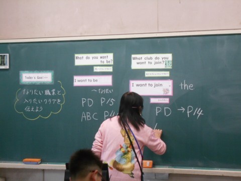 2組は,自分がなりたい職業や中学校でのクラブを英語で話していました。中学生まであと40日をきっています。どんなクラブに入るか楽しみですね。