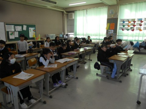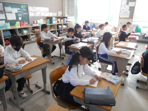 2組では,昨日体育で学習したことをワークシートに書いています。昨日のマット運動のでどんな動きをしたかな?何に挑戦したかな?思い出しながら書いています。