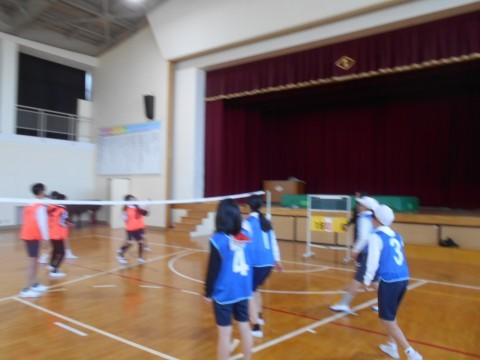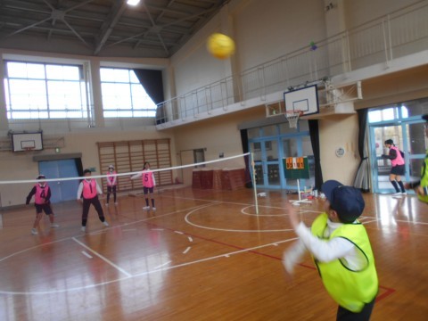 6年生は体育でソフトバレーボールを楽しんでいます。バレーボールは普段の遊びではなかなかやらないものです。なのでボールのコントロールもうまくいかないことが多いですが,チームで繋いで相手に返すことをめざしてがんばっています♪