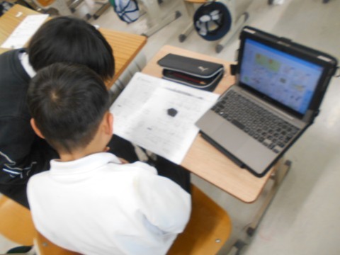 2組は音楽で3つの音を使って自分で好きな旋律を作っていました。とても楽しそうでした♪