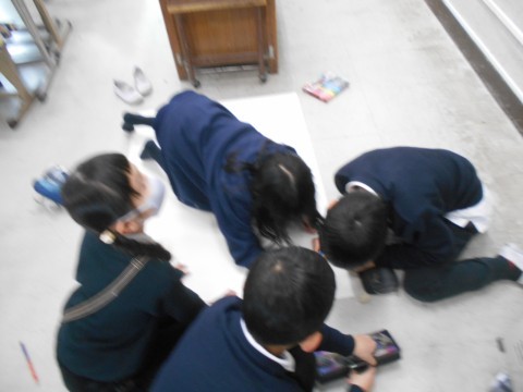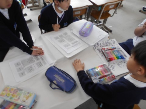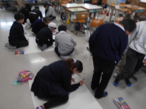2クラスとも総合の学習で学んで地域のよさ,すてきなところを2月の参観に向けて模造紙にまとめていました。