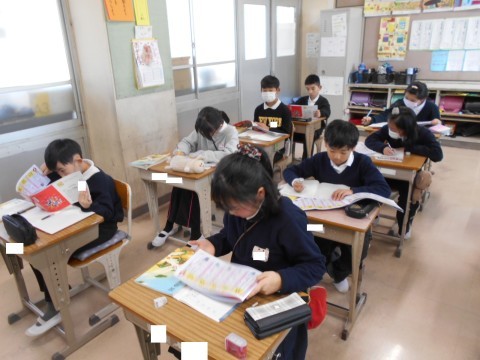 2組では,国語の熟語の成り立ちの学習をしていました。漢字ドリルに書いてあるものなど,たくさんの熟語について,成り立ち方を考えました。