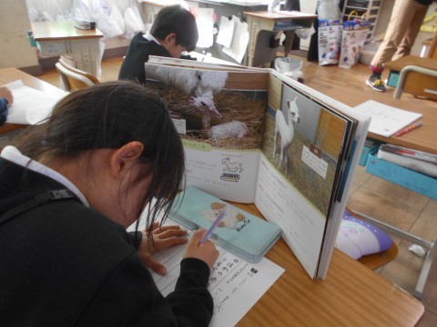 2組は国語で「どうぶつの赤ちゃん」の学習です。自分が興味を持った動物を本を見てしっかりまとめています。