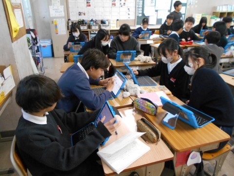 2組では,国語のパンフレット作りをしていました。パンフレットにどんなものを載せるか,インターネットで調べながら考えました。