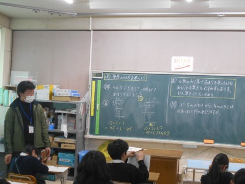 2組は算数で小数のわり算を学習しています。小数点を忘れないようにしましょう!
