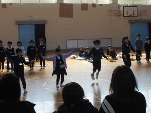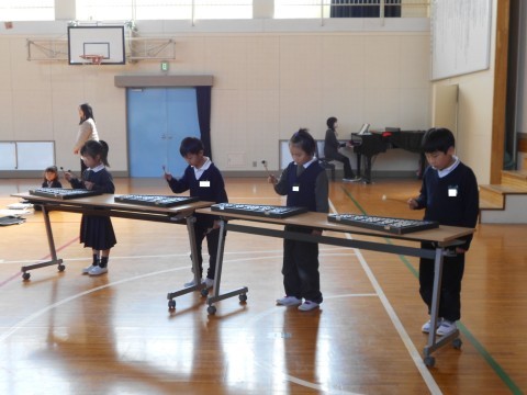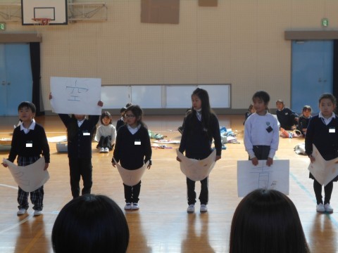 計算,漢字,早口言葉,なわとび,鍵盤ハーモニカ,合奏など,1年間でできるようになったことをたくさん発表しました。
