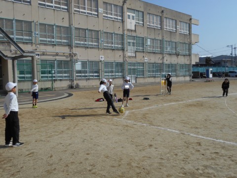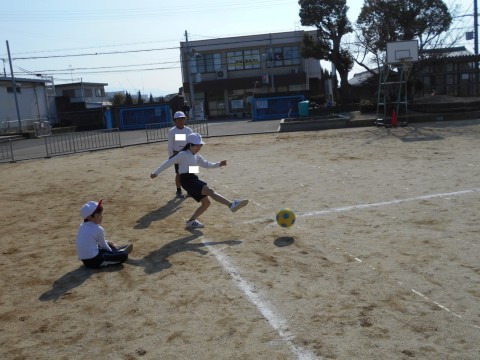体育「キックベースボール」で1組対2組の決戦を行いました。