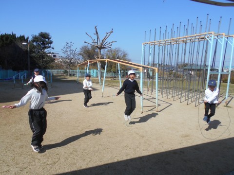 1組は生活で参観日のためにグループに分かれて練習をしています。なわとびグループはバッチリです♪