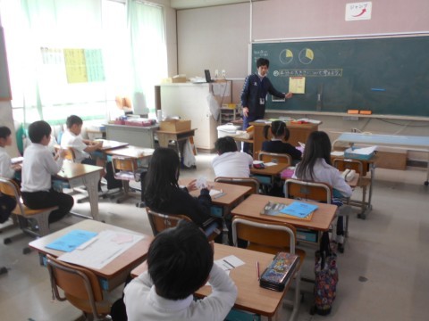 2組は算数で四角の紙を一回だけ折って2分の1にできる折り方をみんなで考えていました!