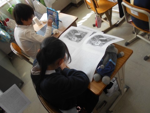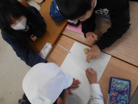 2組は宝島を表す絵からどんな楽しい物語が広がるか,想像した世界を楽しみながら物語を書き進めていました。