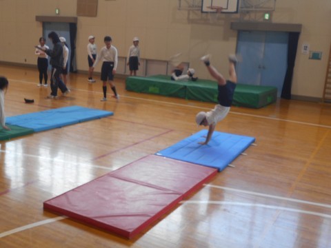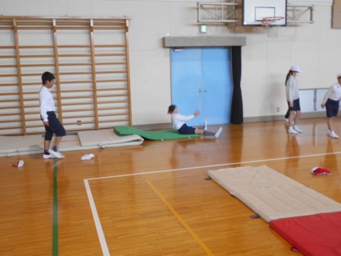 1組は体育でマット運動を学習していました。側転,ロンダート,開脚前転,開脚後転など,自分の挑戦したい技をそれぞれの場で練習しています。