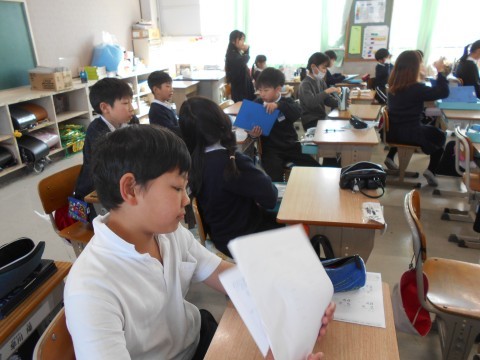 1組では,1年間取り組んだワークを返却してもらっていました。1学期のふり返り,2学期のふり返りを見ながら自分の成長を感じているようでした。