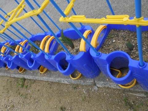 2組では,体育の学習でサッカーに取り組んでいます。ボールを蹴るのはタイミングも強さも方向も難しいですが,一生懸命取り組んでいました。1年生が植えたチューリップがどんどん大きくなっています。何色のお花が咲くのか楽しみですね。