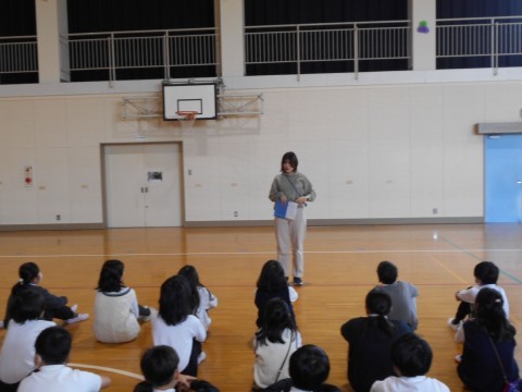 5年生は、学年集会をしていました。学習等で関わりのある先生の紹介の後,担任の先生から大事な話がありました。