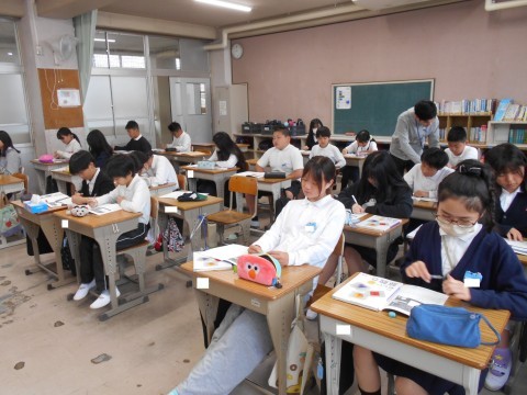2組では,算数の授業がスタートしました。先生の自己紹介の後,早速問題を解いていました。見通しで出た意見を参考にしながら,自分で考えていました。
