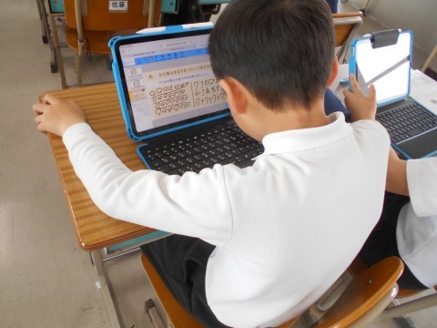 色々なかけざんの解き方を自分で考えて,タブレットに書き込んでいました。