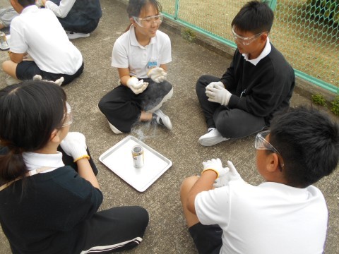 初めは勢いよく燃えていた割り箸が・・・あれ??なかなか燃えませんね。次の授業で,どうすればよいのか考えていきましょう!!