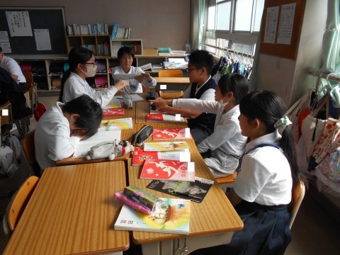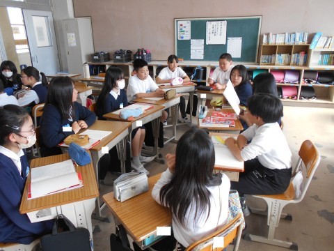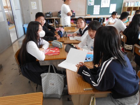 2組では,「伝わるかな,好きな食べ物」の学習をしていました。自分が書いた文章を読み,グループの人に何の食べ物か考えてもらいました。おもしろい表現がたくさんありました☆