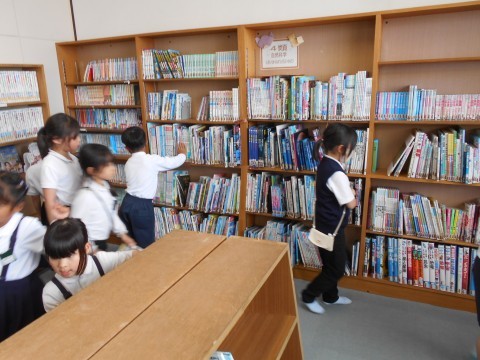 2組は図書の時間でした。リニューアルされた図書室で使い方のお話を聞いたあと,しずかに本を読みました。