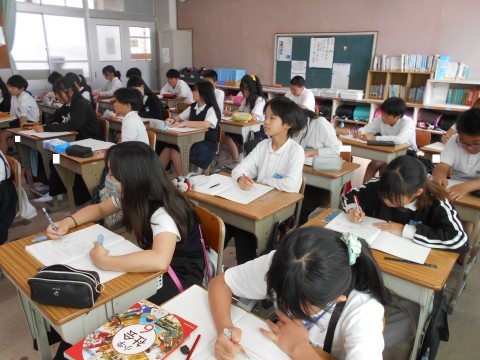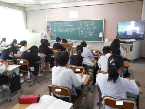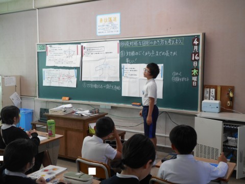 1組では,線対称の図形を描く学習をしていました。マスがない場合,どのようにして描けばいいのか,じっくり考えていました。