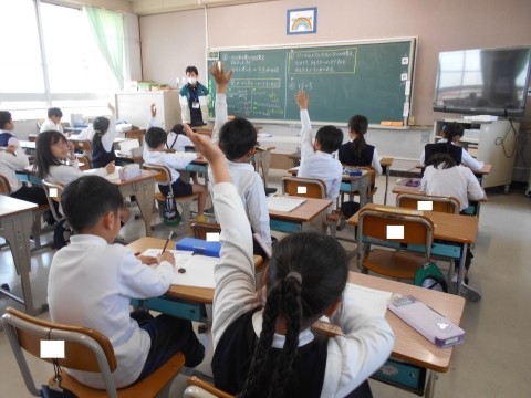 2組では,算数「かけ算」の学習で『12×4』の計算のしかたを考えました。かけられる数を分けて九九を使う考え方を見つけていました。だんだん難しくなっていますが,頑張っています♪